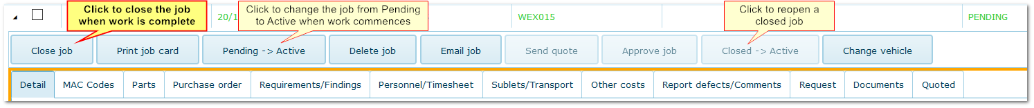 For accurate service scheduling it is vital that jobs are closed when complete and that accurate odometers are recorded.