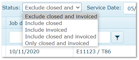 •The default view is Closed and Invoiced jobs but this can be changed using the Status menu