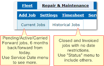 •To access all jobs, use the "Historical Jobs" tab, which includes all jobs recorded in AusFleet