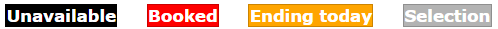 The position/length of the coloured indicator bar represents the booking/unavailable start/end time.