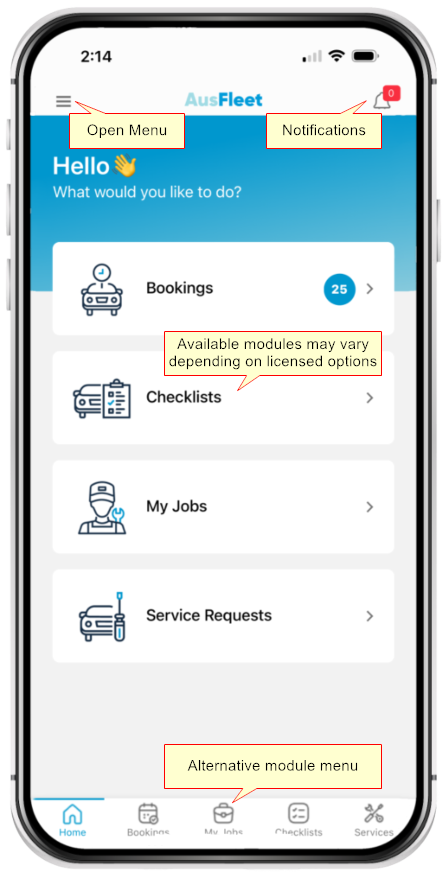Available modules will depend on your organisation's licence.