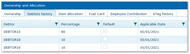 Fleet>>Ownership & Allocation>>Debtors History Tab